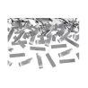 Ce canon à confettis contient des confettis en papier métallique brillant argent en forme de rectangle.