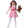 Ce déguisement de luxe a pour pièce maîtresse une robe rose bonbon, avec des motifs foncés qui attirent tous les regards. Elle est surmontée à la taille d’une ceinture rouge en ruban qui rend la tenue encore plus élégante et lui donne l’aspect d’un habit fillette.