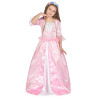 Ce déguisement princesse avec une couronne à fleurs fille se compose d'une robe rose satinée ornée de liserés argentés, de dentelle élégante, d'un laçage sur le haut et de jolis volants.