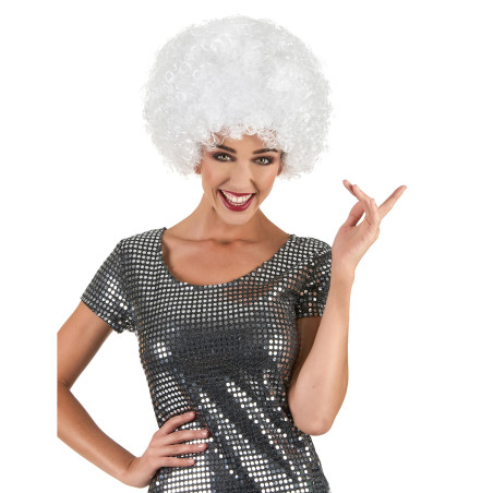 Avec cette perruque Afro blanche vous aurez le parfait look disco pour votre prochaine soirée seventies.
