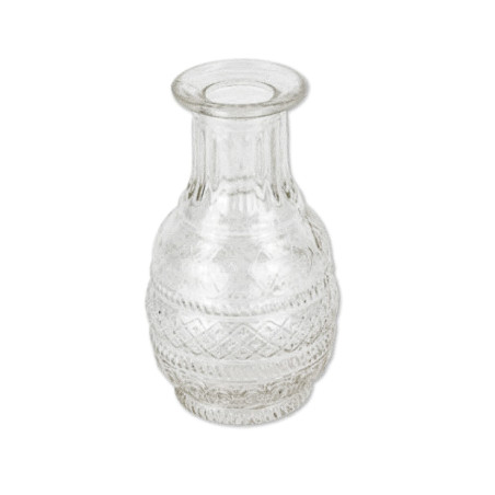 Évoquez l'élégance du passé avec ce vase en verre orné d'une gravure ancienne, mesurant 7,5 x 13 cm.